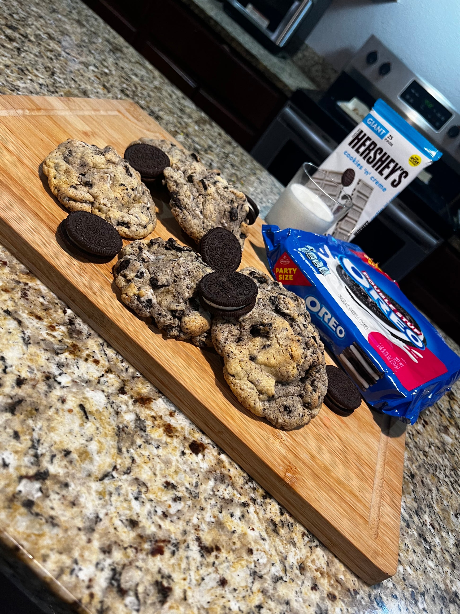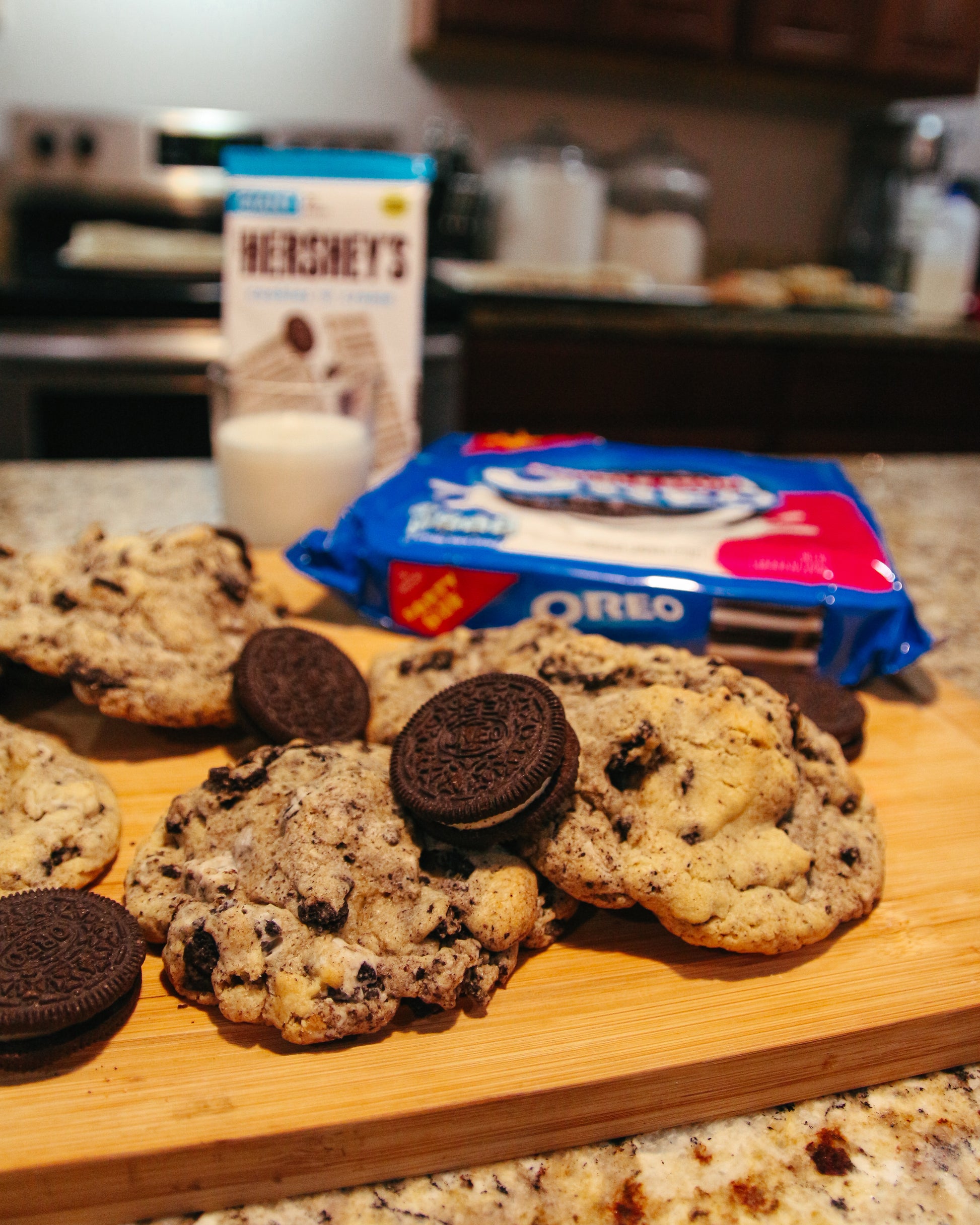 Our standard cookie base packed with Oreos and Hershey’s Cookies & Cream chocolate bar pieces. Stuffed with an Oreo cookie!